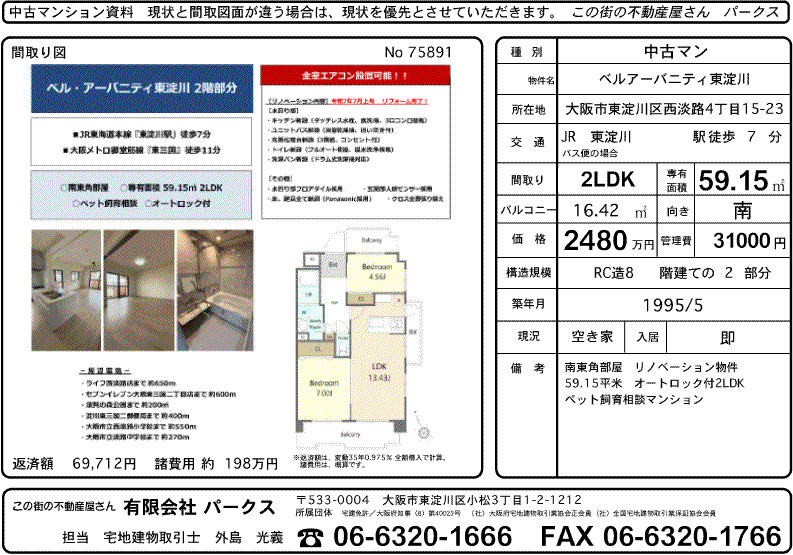JR 東淀川駅歩7分 リノベーション物件 ベルアーバニティ東淀川 2480万円