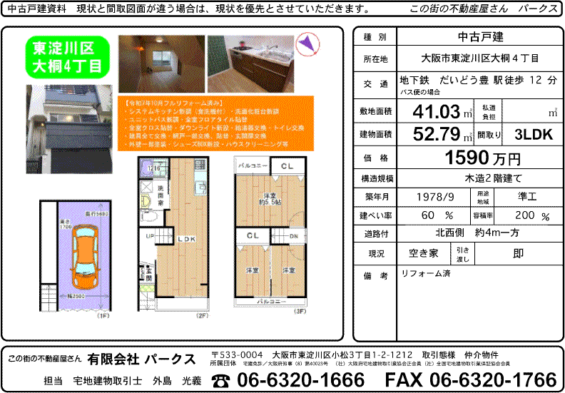 大桐4丁目 リフォーム済み 3LDK+車庫 中古戸建て 1590万円