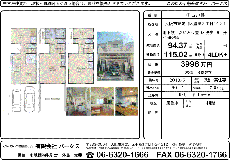 地下鉄 だいどう豊里駅歩9分 豊里3丁目で、車2台駐車可の中古戸建てが、3998万円で登録されました。 2010年5月築。土地も94.37平方メートルあり、建ぺい率・容積率も基準内に入っています。 間取りも廊下を挟んでいますので、独立性が高い間取りとなっています。