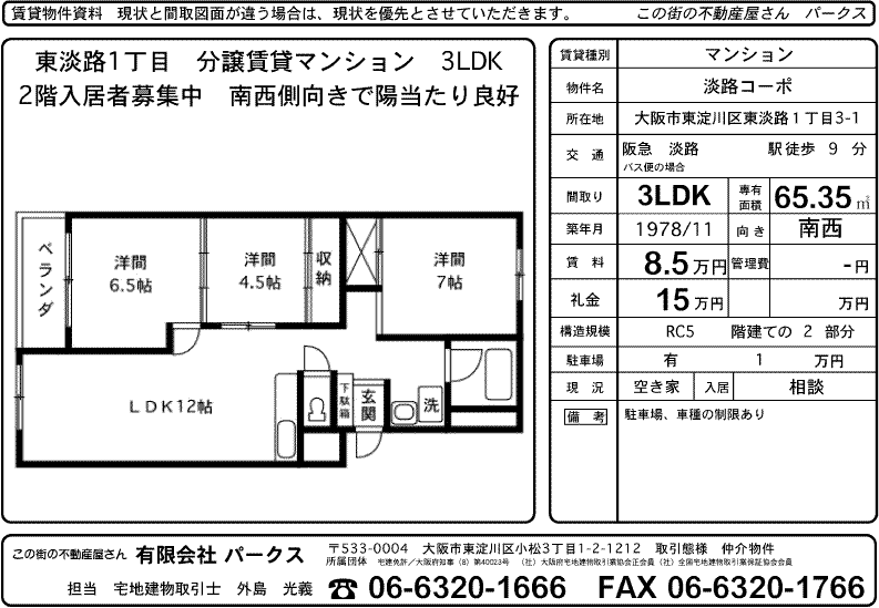 阪急淡路駅歩9分 東淡路1丁目 淡路コーポ 3LDK 85000円