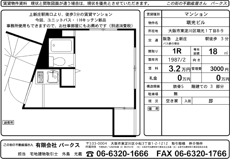 上新庄駅歩3分 事務所使用可 瑞光ビル 1R 32000円