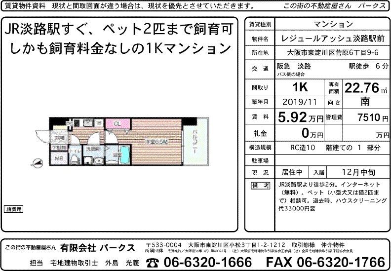 淡路駅歩6分・JR淡路駅より徒歩2分。インターネット(無料)。ペット(小型犬又は猫2匹まで)相談可