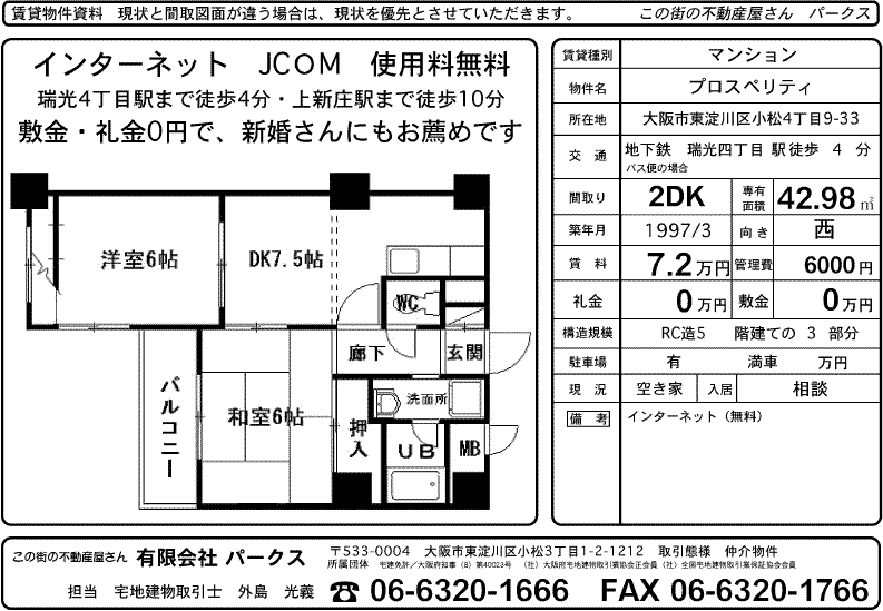 地下鉄瑞光四丁目駅歩4分の小松4丁目にあるプロスペリティで、2DKタイプが72000円で募集中です。 インターネット JCOM 使用料無料 地下鉄 瑞光4丁目駅まで徒歩4分 阪急 上新庄駅まで徒歩10分 敷金・礼金0円で、新婚さんにもお薦めです