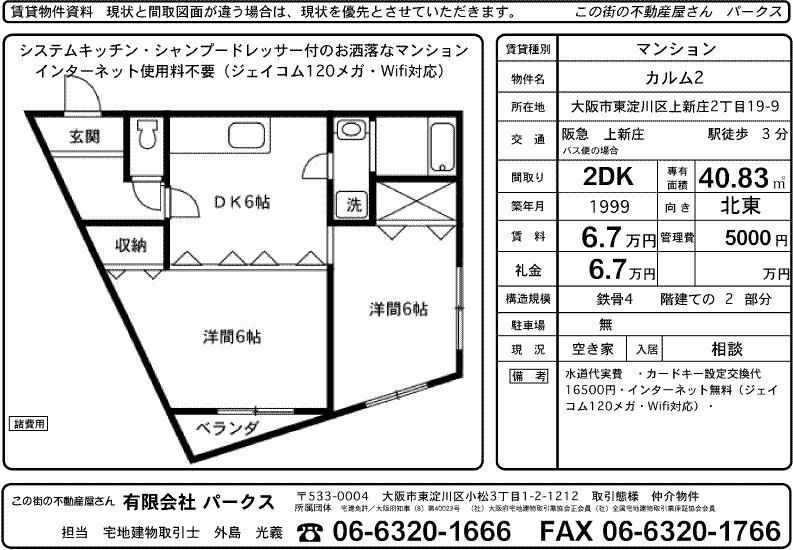 上新庄駅歩3分の上新庄2丁目にあるカルム2で2DK 40.83平方メートルが67000円で登録されました。 システムキッチン・シャンプードレッサー付のお洒落なマンション 水道代実費 ・カードキー設定交換代16500円・インターネット使用料不要(ジェイコム120メガ・Wifi対応)