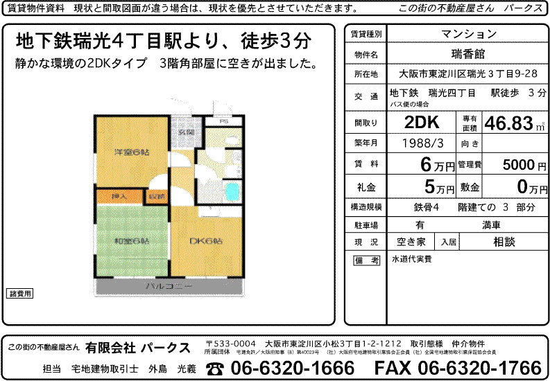 瑞光四丁目駅歩3分 瑞光3丁目 瑞香館 2DK 60000円