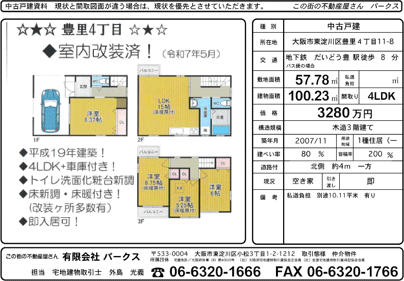 地下鉄 だいどう豊里駅歩8分の豊里4丁目に、平成19年11月建築 4LDK+車庫 室内改装済みの中古戸建てが登録されました。 建築資材の値上がりから戸建て住宅も値上がりしており、その波が中古建てにも来るのではないかと思っております。 お探しの方、一度、ご覧になってみませんか?